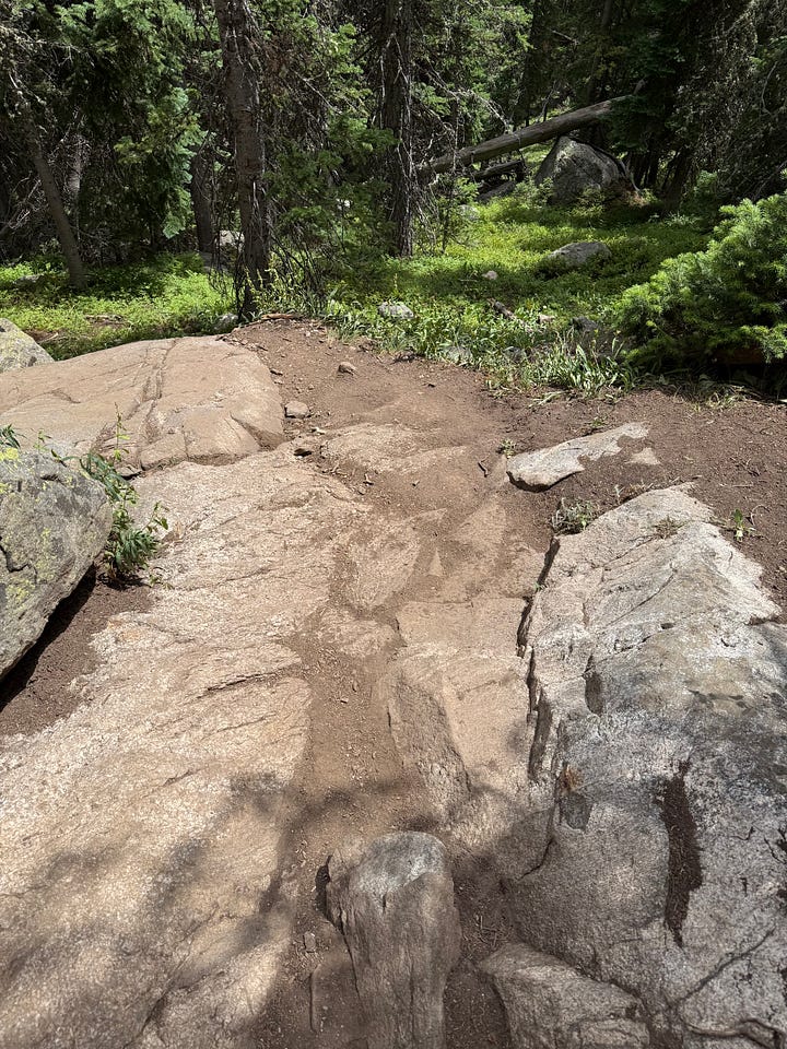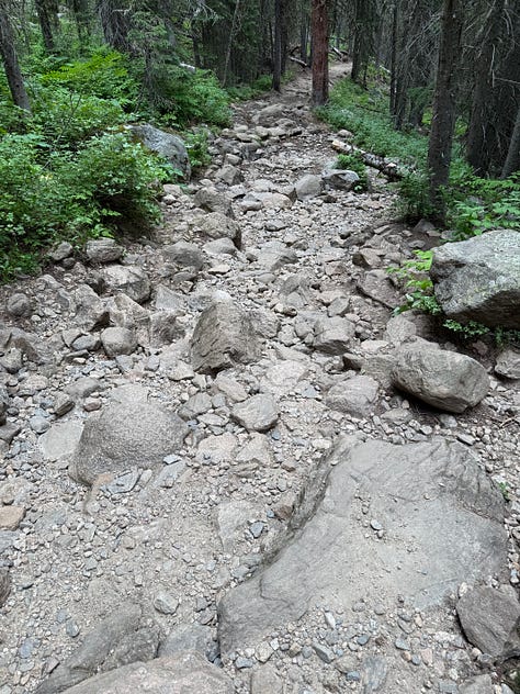 The first mile cracked me open and tears welled up. Despite how much I advocate for feeling feelings, I felt relieved to be alone. To just let it out without needing to explain myself. Landmarks from that last leg of the rescue triggered memories of relief at being closer to safety. I had an intense, full-body flashback, that jerked my whole body to the left while I hiked up the trail, as my brain recalled the moment of impact on my right foot. My gratitude for the strangers who carried me down that mountain still feels bottomless. It was a difficult hike on my own two feet. Imagining carrying another human down it is something else entirely.